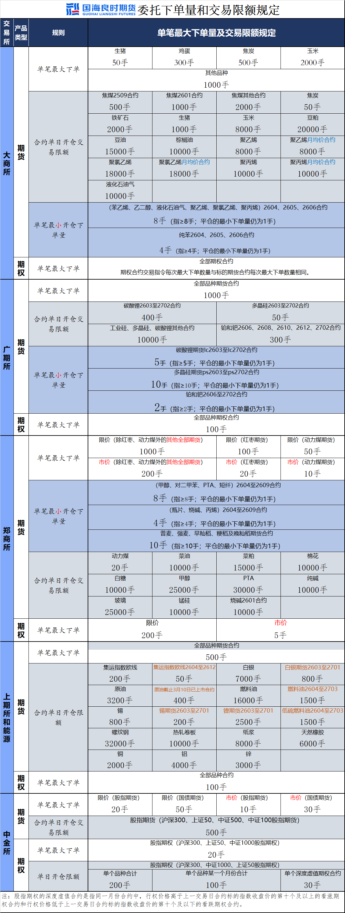 国海良时期货——交易指令和下单规则表