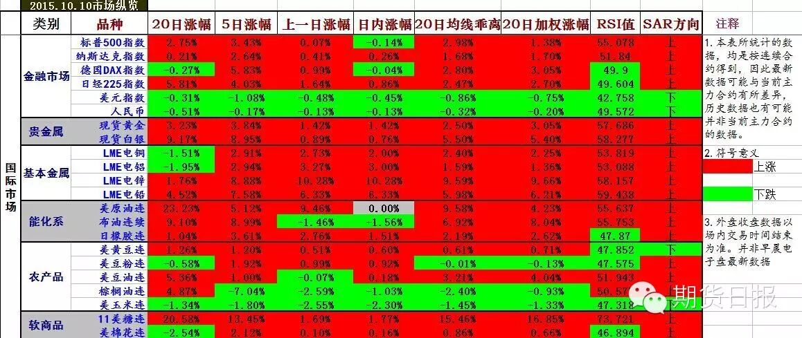 1 . 美股周五收涨。道琼斯指数涨0.20%,标普涨0.07%;欧洲斯托克50指数涨0.79%。美元指数跌0.40%;伦铜涨2.73%;原油涨0.12%;黄金涨0.99%;美豆涨0.48%;美豆粉涨0.95%,美豆油跌0.21%;美糖涨1.28%;美棉跌0.18%;CRB指数涨0.69%;BDI指数跌0.98%;高盛商品指数涨0.23%;较昨日15:15恒生期指涨0.55%,A50期指涨0.13%。