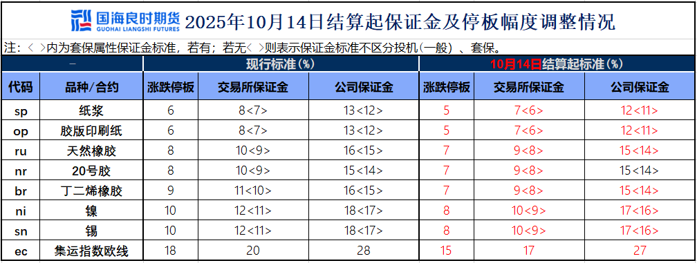 附:2025年10月14日结算起保证金及停板幅度调整情况