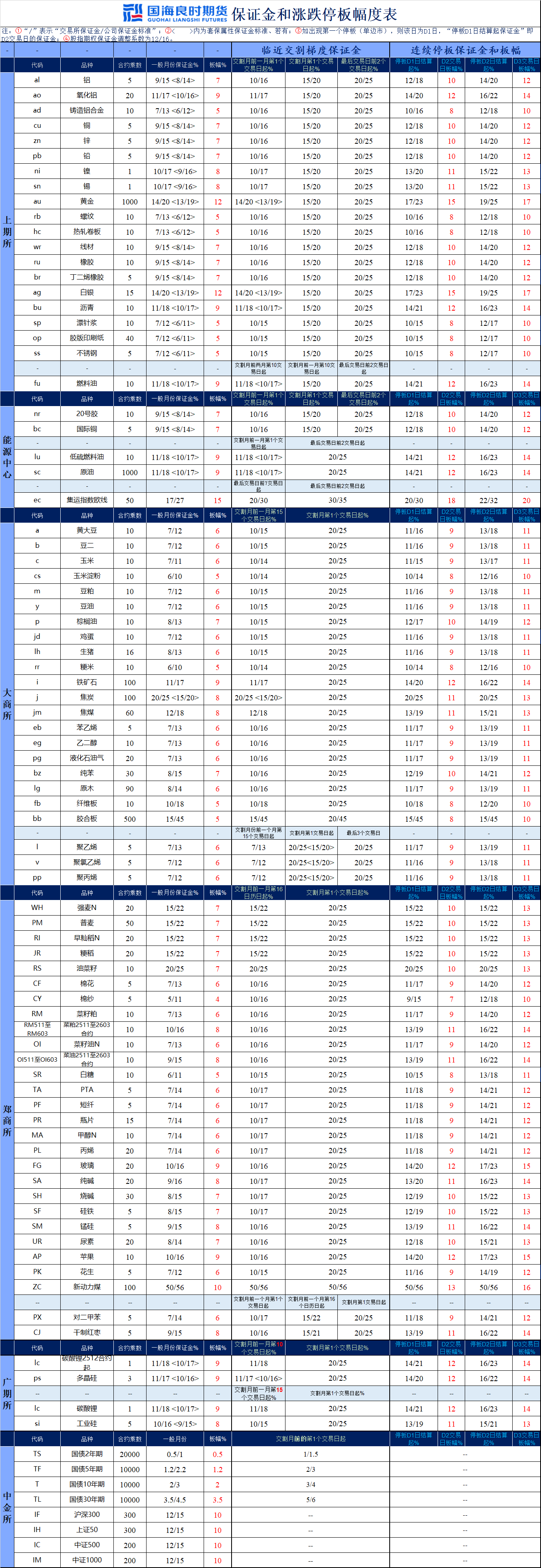 国海良时期货——公司保证金标准及停板幅度表20251014