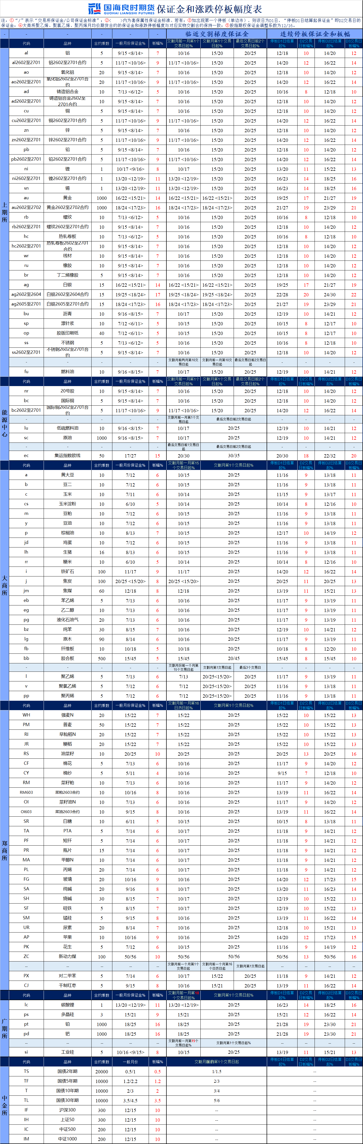 国海良时期货——公司保证金标准及停板幅度表20260130