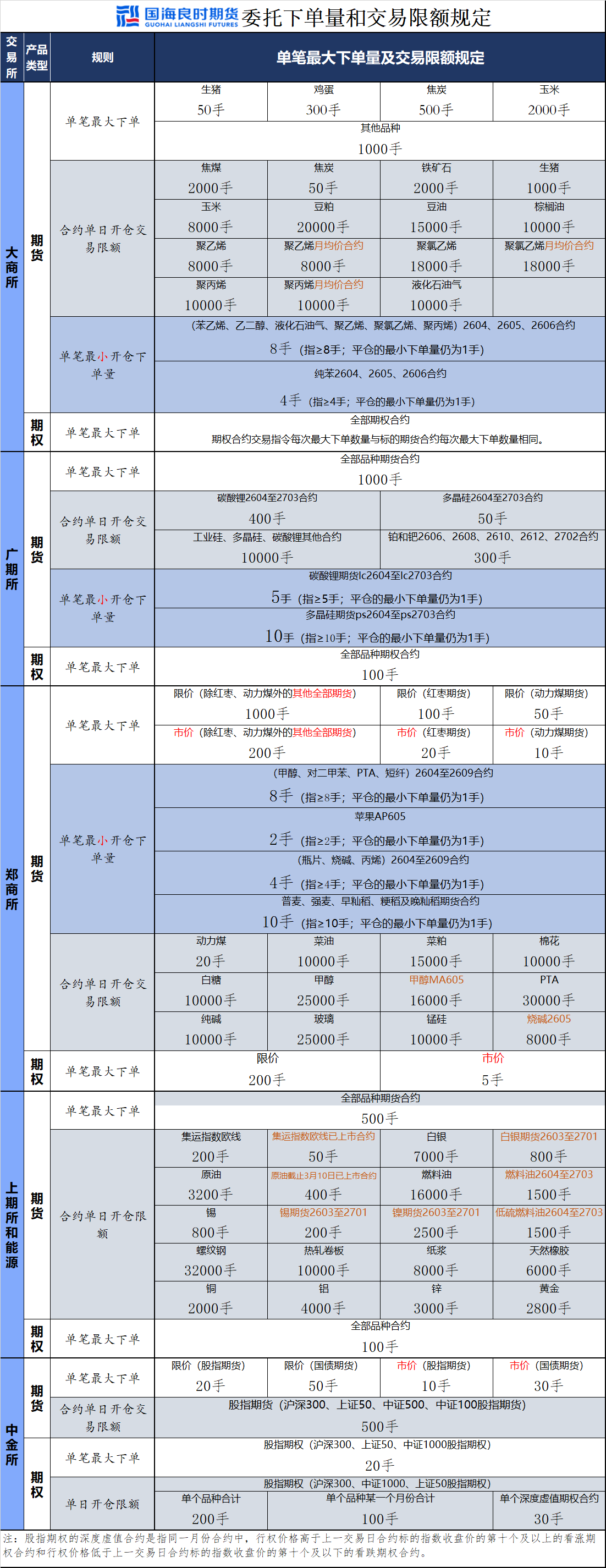 国海良时期货——交易指令和下单规则表