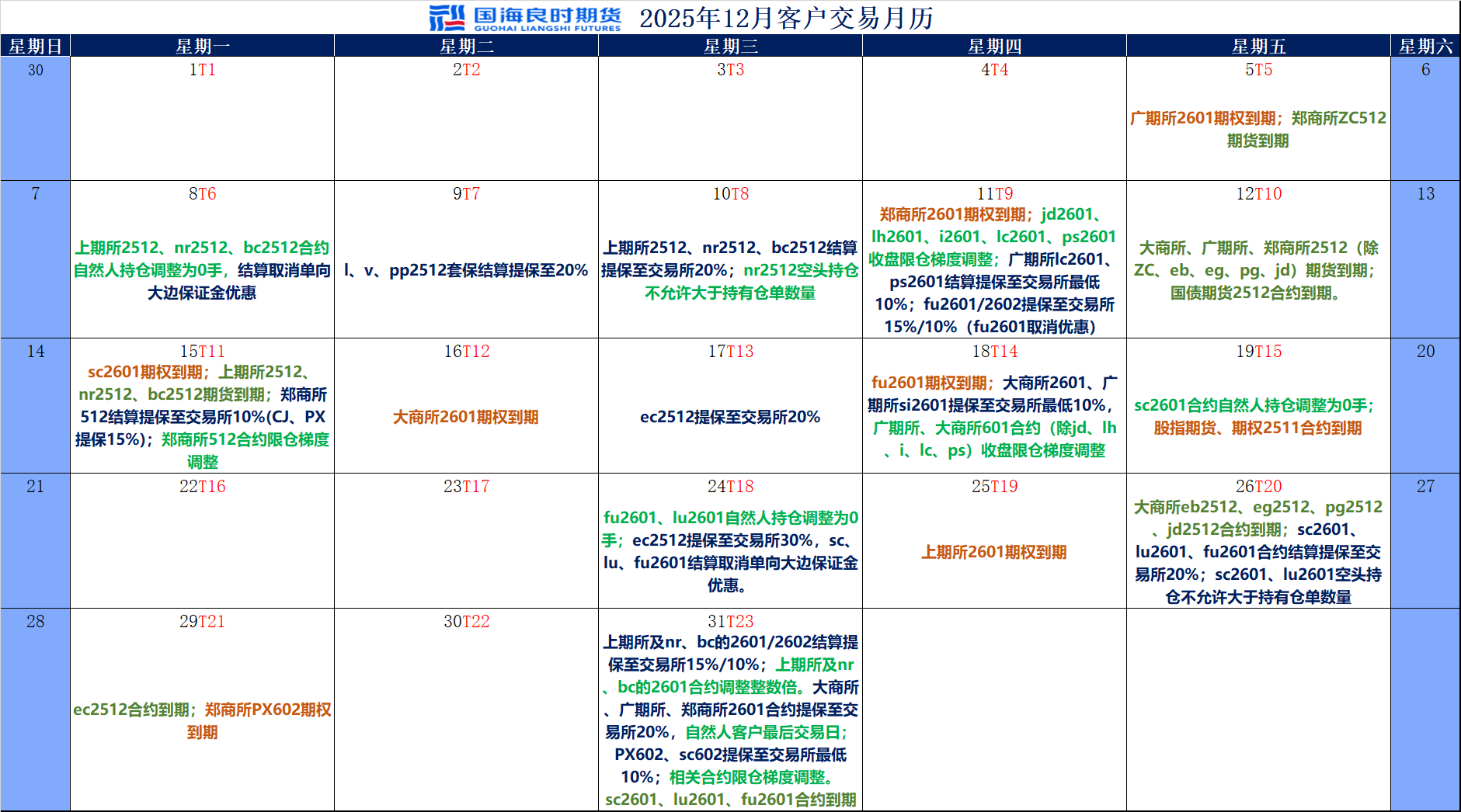 2025年12月客户交易月历